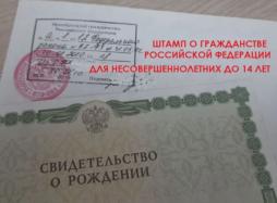 Согласно законодательству, у ребенка в возрасте до 14 лет наличие гражданства Российской Федерации подтверждается свидетельством о рождении с наличием заверенной отметки о гражданстве РФ. Смотрите памятку об оформлении по ссылке.
